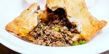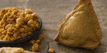 Traditional appetizer filled with pigeon peas, cashews and spices