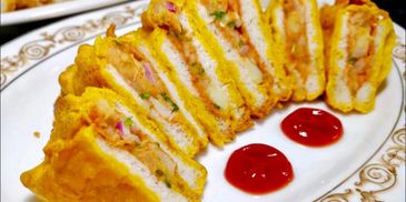 Cashews, potatoes and spices rolled in bread crumbs and slightly fried